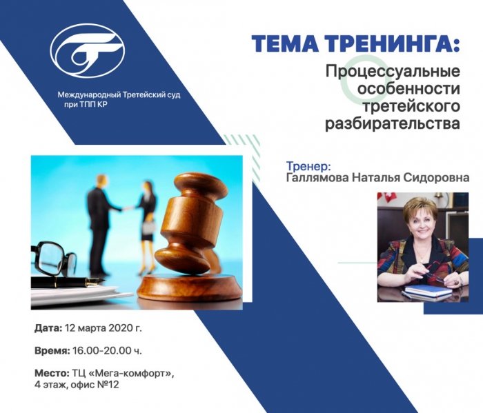 Приглашаем вас на тренинг: "Процессуальные особенности третейского разбирательства".