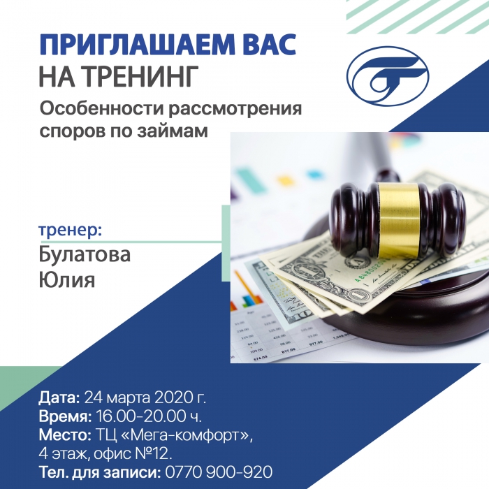 Приглашаем вас на тренинг: "Особенности рассмотрения споров по взысканию кредитной задолженности и задолженности по займам, а также обращения взыскания на заложенное имущество. Процессуальные особенности третейского разбирательства".